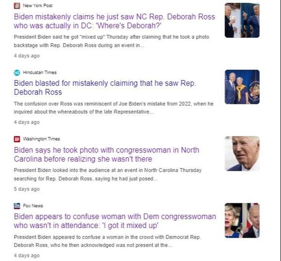 [U.S Politics] President Biden's recent mix-up with Rep. Deborah Ross, mistakenly claiming to have taken a photo with her when she wasn't even present, has raised eyebrows. Yet, unlike other similar episodes, this one seems curiously absent from the headlines of major news outlets.